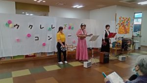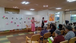 デイサービスのフロアーにてウクレレコンサートを開催しました(^^♪