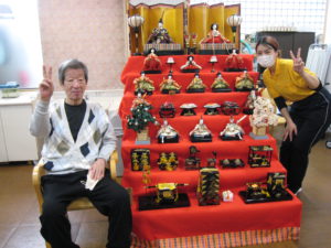デイサービスに立派なひな人形を飾りましたよ🎵