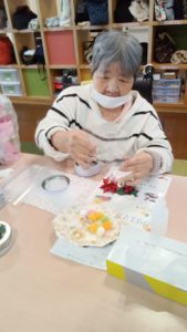 11月のデイサービスの美容レクは、『クリスマスアロマ缶』作りをしましたよ(^^♪
