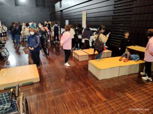 段ボールベッドの体験、車いすの体験を担当しましたよ